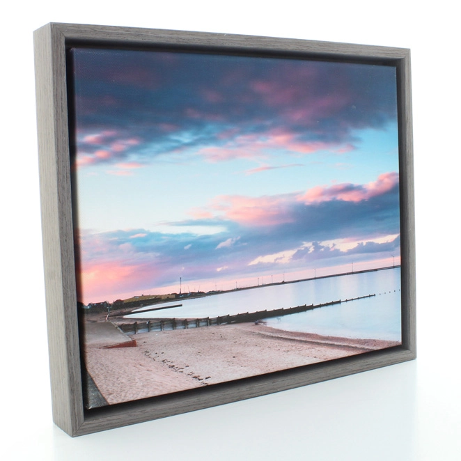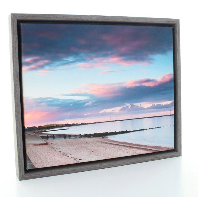 10mm Stelvio Grey Veneer Canvas Floater Frame with an internal depth of 30mm. Check out our How-to video for further details of canvas floater frames.