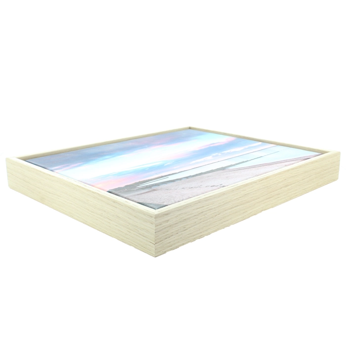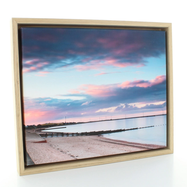 10mm Stelvio Oak Veneer Canvas Floater Frame with an internal depth of 30mm. Check out our How-to video for further details of canvas floater frames.